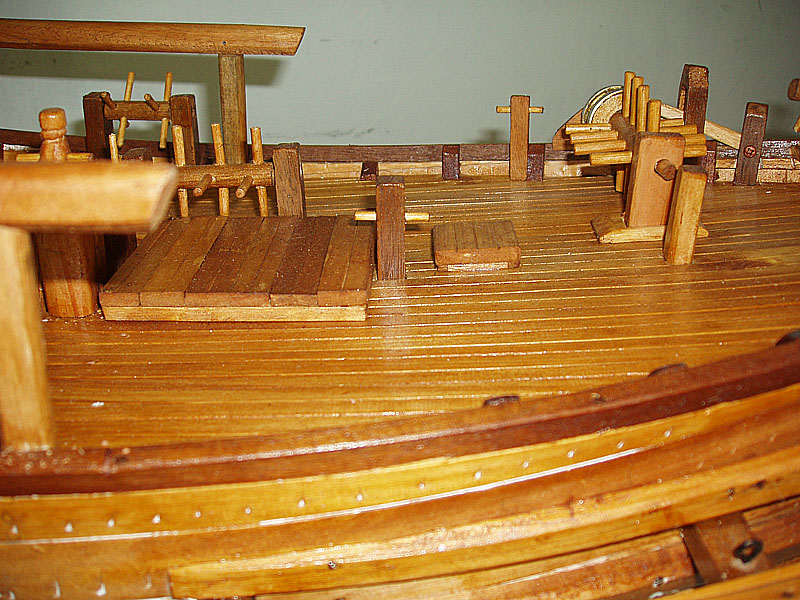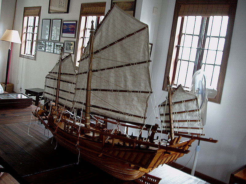 在“金华兴”号上看到了广船的标志——多孔舵,水密隔舱、轴转轮、平衡硬式斜桁四角帆,——岭南地区巧夺天工的古老造船工艺。“金华兴”号今停泊在珠海香洲码头。